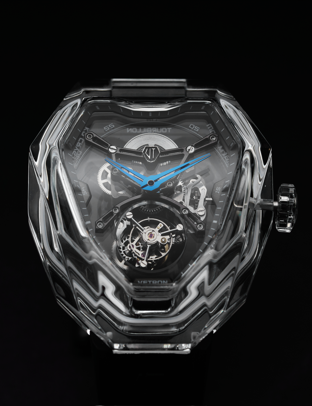 The idea for Vetron was ignited at a car show, where the transparent hoods of high-performance engines revealed the intricate mechanics within. We wondered: What if a watch could do the same? What if it could showcase the artistry of its movement, not hide it? This vision led to the creation of our signature K9 glass watch case.